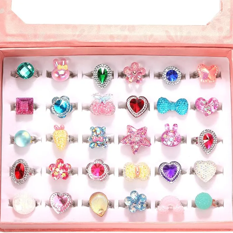 Unikalny design - ten zestaw zawiera 30 różnych stylów pierścionków z imitacją kamieni szlachetnych, które z pewnością zauroczą Twoje dziecko. Te pierścienie są wykonane z przezroczystego materiału akrylowego i są olśniewające. Unikalnie zaprojektowany, jak pokazano.