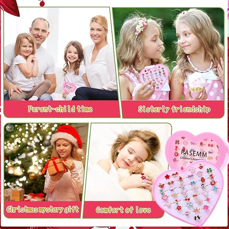 Te pierścionki dla dziewczynki umieszczono w różowym pudełku w kształcie serca. Zapakowany w pudełko pierścionek dziecięcy to najlepszy prezent na Boże Narodzenie i urodziny dla dziewczynek w wieku od 4 do 12 lat. Wykwintne opakowanie idealnie nadaje się na przyjęcia urodzinowe, wypełniacze do prezentów, wypełniacze do torebek na prezenty, nagrody imprezowe, zajęcia sezonowe, takie jak Halloween, Walentynki, dekoracje świąteczne i artykuły na przyjęcia dla dziewcząt. Ten zestaw pierścionków z biżuterią dla dziewcząt to idealny i uroczy prezent na Boże Narodzenie i urodziny dla dziewczynek w wieku od 4 do 12 lat.
