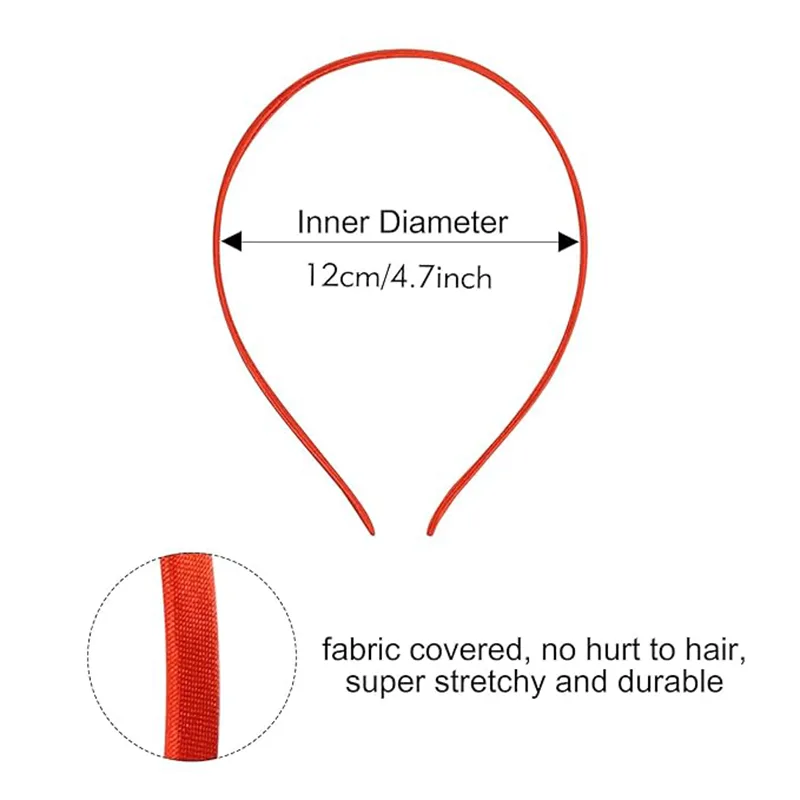 Wzór: Metal jest owinięty tkaniną, dzięki czemu opaska do włosów jest antypoślizgowa. Kolorowe, twarde i cienkie gumki do włosów mają około 0,2 cala szerokości, są lekkie i przenośne i można je nosić stabilnie przez cały dzień.