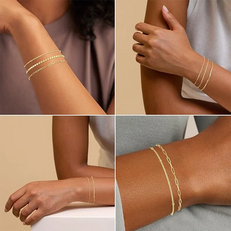 Odpowiedni dla wrażliwej skóry - w 100% nie powoduje zielonego koloru nadgarstków. Złote bransoletki dla nastolatek wykonane są z wysokiej jakości materiałów. Powłoka z 14-karatowego złota jest trwała i nie powoduje zmiany koloru. Nie zawiera ołowiu, niklu i nie powoduje alergii, jest przyjazny dla wrażliwej skóry.