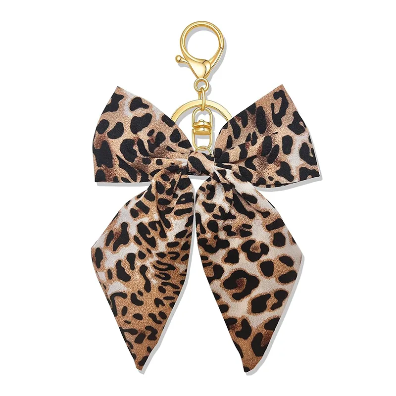 Dopasowanie kluczy: Zawieszka do torby z kokardką w panterkę służy jako breloczek do kluczy i zawieszana na kluczykach do samochodu i kluczy do domu, dzięki czemu monotonny breloczek do kluczy jest modny i bardziej rzucający się w oczy podczas szukania kluczy.