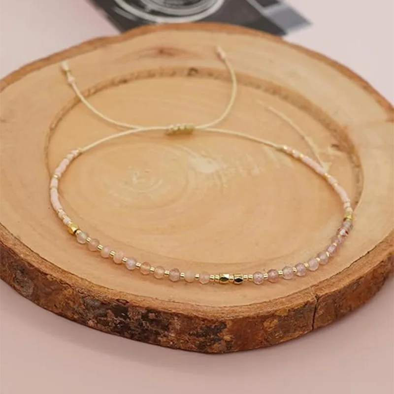 Bransoletki sznurkowe damskie z drobnymi koralikami to bransoletka wykonana z naturalnych kamieni półszlachetnych. Kamienie te zostały przez nas starannie wyselekcjonowane i charakteryzują się niepowtarzalnymi wzorami, kolorami i energią. Proszę nosić je z ufnością.